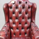 A 20th century red buttoned leather revolving desk chair with brass studwork, on outswept legs and castors, height 121cm, width 75cm, depth 80cm.