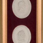 A pair of Grand Tour cast plaster intaglio seals, depicting portraits of Caligula and Vitellius VIIII, 7cm x 6cm, later framed.