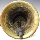 A 20th century cast metal bell, possibly from a fire station, detailed 'L.C.C.' to suspension lug, height 25cm, diameter 24cm, together with a 19th century brass cased telescope by Perken Son & Rayment, Hatton Garden, London, length 54cm (faults), and a cast metal ornamental key.