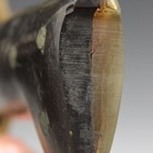 A Second World War period 'Legitimus' Bowie style knife by Collins & Co, Hartford, Connecticut, the single-edged clipped-back fullered blade detailed 'Collins & Co Hartford No 18', blade length 24.5cm, with shaped brass guard and horn grip, with embossed leather scabbard.