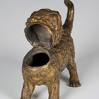 A late 19th century Austrian cold painted cast bronze novelty inkwell model of a standing cat, in the manner of Franz Bergman, the hinged head enclosing a space for an inkwell, the underside stamped 'Geschützt', height 11.4cm, length 17.5cm.