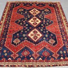 An Afshar rug, South-west Persia, mid-20th century, the ink blue field with three ivory hooked medallions, within a hooked gul and plant border, 201cm x 161cm.