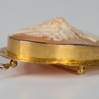 A gold mounted oval shell cameo pendant brooch, carved as a classical portrait of a lady within an engraved surround, detailed '10K', weight 13.3g, length 5.2cm.