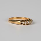 An 18ct gold and diamond five stone ring, mounted with a row of graduated cushion cut diamonds, weight 2.9g, ring size approx N.