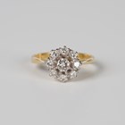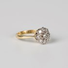 An 18ct gold and diamond nine stone cluster ring, claw set with the principal circular cut diamond mounted to the centre, London 1978, weight 4g, ring size approx N1/2, with a case.