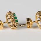 A pair of emerald and colourless gem set cluster earstuds, each claw set with a square step cut emerald within a colourless gem set surround, with post and butterfly fittings, each butterfly detailed '18K', weight 4.7g, each length 1.1cm, with a case.