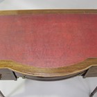 An Edwardian mahogany and boxwood inlaid writing table, fitted with five drawers, on square tapering legs, height 72cm, width 91cm, depth 52cm.