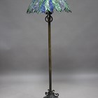 A modern anodized metal lamp standard, fitted with a large Tiffany style stained and leaded glass shade, height 154cm.