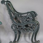A pair of early 20th century green painted cast iron bench ends of scroll form, height 83cm, depth 56cm, together with another similar pair of bench ends.