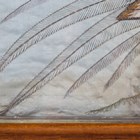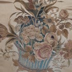A near pair of late 19th century Japanese silk and metal thread stumpwork panels, both depicting ornamental pheasants, 40cm x 50cm and 36cm x 50cm, within bird's eye maple frames, together with a Regency silkwork panel, finely worked with a basket of flowers, 50cm x 43cm (faults).