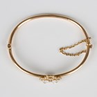 A gold, moonstone and seed pearl oval hinged bangle, the front with two heart shaped motifs and a coronet surmount, on a snap clasp, unmarked, weight 7.2g, inside width 5.7cm.