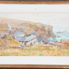 Charles Earle - 'A Cornish Pilchard Station', watercolour heightened with body-colour, signed recto, titled label verso, 39cm x 74cm, within a gilt composition frame.