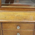 An Edwardian oak breakfront bookcase, the glazed top above carved cupboard doors and drawers, height 203cm, width 153cm, depth 47cm (lacking cornice).