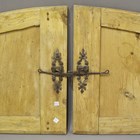 A set of four 19th century walnut cupboard doors, height 74cm, width 58cm, and a pair of 19th century pine cupboard doors, height 54cm, width 46cm.