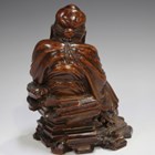 A Chinese carved bamboo figure of Shoulao, Qing dynasty, the god of longevity holding a peach and ruyi sceptre whilst seated on a rocky base, height 18cm.