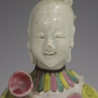 Two Chinese famille rose export porcelain immortals, Qianlong period, each with enamelled decoration, heights 21.5cm and 22cm (minor faults and restoration).