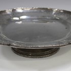 A George V silver low comport, the raised lobed border engraved with foliate scrolls within a cast rim, raised on a similarly decorated circular foot, Sheffield 1911 by William Hutton & Sons Ltd, weight 624g, diameter 24.5cm.