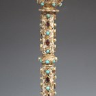 A 19th century Continental Judaic silver gilt, gem set and ivory yad (torah pointer), probably Austro-Hungarian, the silver gilt handle embellished with turquoise and garnet cabochons beneath a banded agate cabochon terminal, the ivory branch stem with hand pointer terminal, length 23.5cm.