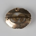 A Victorian gold, rose cut diamond, half-pearl and black enamelled mourning brooch, the centre mounted with a forget-me-not flower spray within a scrolling border, the back glazed with a feathered hair locket compartment, detailed 'In Memory of Mrs Elizh Tann, Died Oct 13 1862, aged 71', weight 15.3g, width 3.8cm.