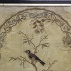 A Regency silkwork panel, finely worked with a central goldfinch perched on a tree, within a border of flowering tendrils, 54cm x 43cm, within an ebonized frame.