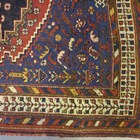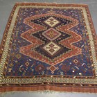 An Afshar rug, South-west Persia, early 20th century, the blue field with three hooked medallions, within a shaped reserve and ivory border, 169cm x 137cm.