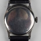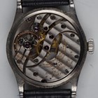 A Patek Philippe stainless steel circular cased gentleman's wristwatch, Ref. 96, circa 1940, the signed silvered dial with baton hour markers and subsidiary seconds, the signed jewelled movement numbered 'No 827341', the signed case back interior numbered '610776', case diameter 3.1cm, on a black leather strap.