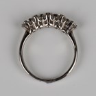 An 18ct white gold, platinum and diamond five stone ring, claw set with a row of circular cut diamonds graduating in size to the centre stone, detailed '18ct Plat', weight 4.7g, ring size approx N1/2, with a case.