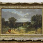 Circle of Charles Grenville Morris - Figures on a Rural Track, late 19th century oil on canvas, 21cm x 33.5cm, within a painted and gilt frame.