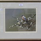 Bruce Henry - 'Bullfinches on Blackthorn', watercolour with gouache, signed recto, titled and dated 1989 to label verso, 22.5cm x 30cm, together with a 19th century watercolour and gouache, Blue Tits, and two further natural history gouaches by Ken Taylor.