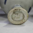 A group of three Chinese blue and white 'Hatcher Collection' Cargo stem cups, late Ming dynasty, each rounded circular bowl painted with coastal landscapes, on a spreading foot, heights 6.7cm to 6.9cm, together with a blue and white 'Hatcher Collection' porcelain circular bowl, diameter 9.7cm, all but one bearing 'Hatcher Collection Christie's June '84', paper label (minor faults).