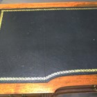 A George V mahogany inverted breakfront writing desk by Maple & Co, the gilt-tooled green leather top above nine drawers, one stamped with maker's mark, raised on carved cabriole legs, height 77.5cm, width 127.5cm, depth 65cm.
