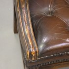 A 20th century buttoned brown leather library armchair, on moulded block legs, height 104cm, width 58cm.