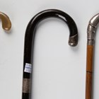 A late 19th century horn handled and gilt metal mounted walking cane, length 83cm, together with two other silver mounted walking canes.