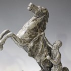 A pair of late 19th century cast spelter models of Marly horses and attendants, on slate bases, height 43cm (faults).