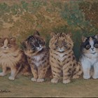 Louis Wain - Four Kittens in a Garden Setting, early 20th century watercolour with gouache on paper laid onto card, emboldened signature, 25cm x 34.5cm.