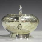 A Victorian silver circular two-handled sugar bowl, engraved with flowers and foliate scrolls, on a circular foot, London 1844 by John & Henry Lias, weight 360g, length 19cm.