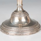 An Elizabeth II silver candlestick with detachable screw urn shaped sconce and a matching detachable twin scroll branch to form a three-light candelabrum, decorated with bellflower bands, Birmingham 1961 by Adie Brothers Ltd, height 20.5cm, together with another matching branch.