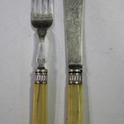 A set of twelve Edwardian silver and ivory handled fish knives and forks, Sheffield 1909 and 1910 by Mappin & Webb, a pair of silver bonbon tazze, Birmingham 1910 by Sydney & Co, and a silver caster cover, London 1908.