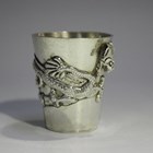 A Chinese silver spirit measure, decorated in relief with a dragon and toad, and engraved with a line of characters, marks to base, weight 40g, height 4.3cm.