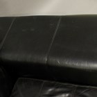 A modern black leather designer sofa, raised on block legs, height 78cm, width 169cm, depth 94cm.