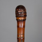 A late 19th century Japanese bamboo walking cane, carved in overall relief with birds and foliage, length 90cm.