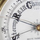 An early 20th brass circular cased aneroid wall barometer, the printed ceramic dial inscribed 'Whyte Thomson & Co Glasgow', the cylinder case with oak backplate surmounted with a brass anchor, the reverse applied with a brass plaque, inscribed 'Souvenir of Captain Fryatt's Boat. S.S Brussels. Sunk 31st August 1919. The Mole. Zeebrugge', height 46.5cm (glass cracked). Note: Charles Algernon Fryatt (1872-1916) was a British Merchant Navy captain; commanding the S.S. Brussels on the 28th March 1915, whilst under attack from a German U-boat, Fryatt attempted to ram the U-boat. He was later captured by the Germans in June 1916. As a non-combatant involved in a hostile action, he was tried and immediately executed by firing squad in Bruges on the 27th July 1916. His execution caused an international outcry.