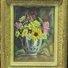 Muriel Wheeler - Still Life of Summer Flowers in a Vase, oil on canvas, signed with initials and dated 1951, 46.5cm x 37.5cm, together with another work by the same hand, Still Life of Flowers in a Vase, oil on board, signed and dated 1954 verso, 21.5cm x 15.5cm, within a gilt composition frame.