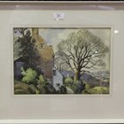 Frank James - 'Cottages at West Hoathly', 20th century watercolour, signed recto, titled label verso, 25.5cm x 36.5cm, within a painted wood frame, together with three other framed watercolours.