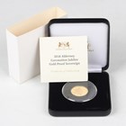 An Elizabeth II Harrington & Byrne eight gram gold proof Alderney sovereign 2018 commemorating the Queen's Coronation Jubilee, cased.