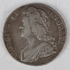 A George II crown 1741, edge detailed 'Decimo Quarto'.