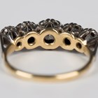 A gold and palladium, sapphire and diamond five stone ring, mounted with three circular cut diamonds and two circular cut sapphires, detailed '18ct & PALL', weight 4g, ring size approx P.