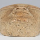 A pre-Columbian Teotihuacan style carved buff hardstone mask, probably 250-700 AD, with pierced holes to sides, bearing collector's label to reverse, height 9cm, width 8.5cm. Provenance: from the estate of a West Sussex collector.