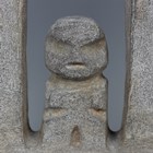 A pre-Columbian Mezcala style carved grey hardstone model of a temple, probably 700-300 BC, modelled with central figure, height 20.5cm, width 15.3cm. Provenance: from the estate of a West Sussex collector.