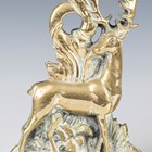 A pair of Victorian cast brass and iron doorstops, modelled as stags below a scrolling terminal, height 41cm.